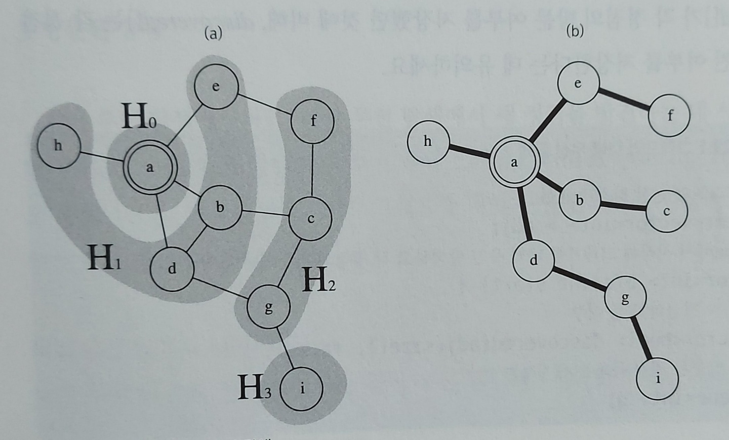 H0의 a를 방문하고, H1의 b d e h, 그리고 H2, H3에 속한 정점들을 순서대로 방문해 나간다