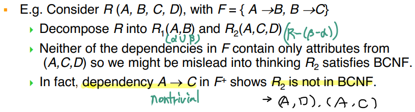 또한, 3NF를 test 하기 위해 F+의 FD가 아닌 F의 FD만 체크하면 된다