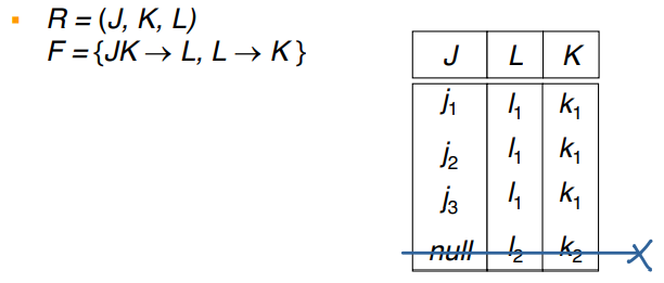 L, K의 관계를 표현하기 위해 J에 null 값을 사용한다