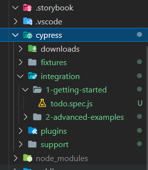 cypress 설치 시 다음과 같은 폴더가 생성된다